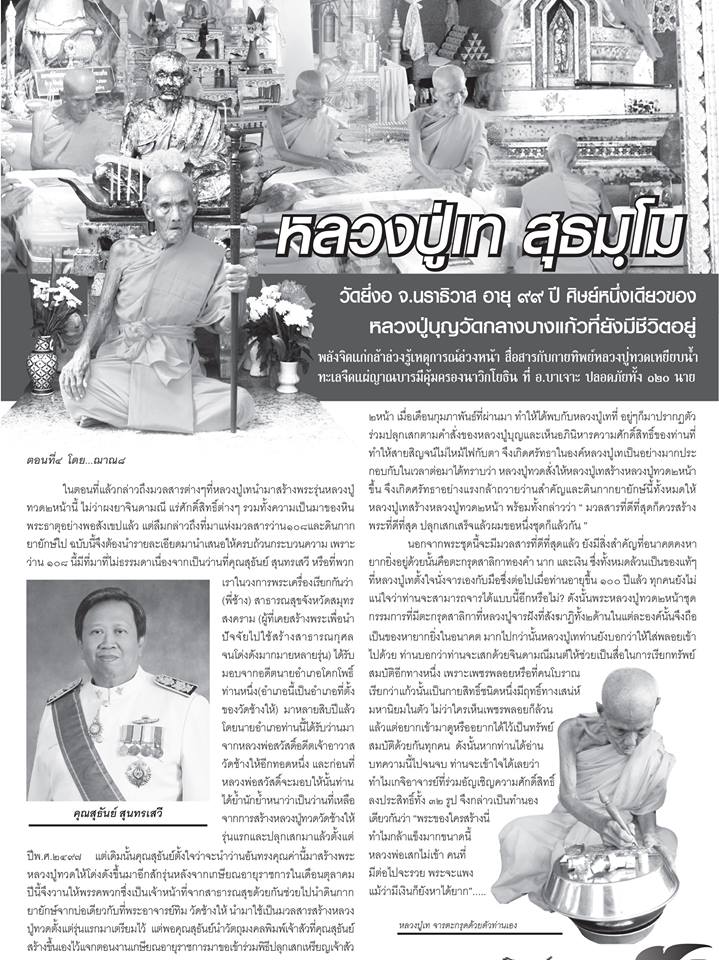 หากกล่าวถึงสำนักวัดกลางบางแก้ว อ.นครชัยศรี จ.นครปฐม คงไม่มีใครที่ไม่รู้จัก..หลวงปู่บุญ ขนฺธโชติ พระเกจิอาจารย์ผู้เปี่ยมด้วยความเมตตากรุณา คอยอุปการะพระภิกษุสงฆ์ สามเณรและลูกศิษย์อยู่เป็นนิจตลอดอายุขัยของท่าน เด็กๆหลายคนได้รับการเลี้ยงดูอบรมสอนสั่งและถ่ายทอดความรู้ต่างให้จนกระทั่งเติบใหญ่ กลายเป็นพระเกจิอาจารย์ตามรอยท่านก็มีอยู่ไม่น้อย อาทิ หลวงปู่เพิ่ม วัดกลางบางแก้ว หลวงปู่ดี วัดสุวรรณฯ หรือแม้กระทั่งหลวงพ่อทองอยู่ วัดท่าเสา ผู้เป็นหลานชาย ซึ่งต่างก็มรณภาพตามท่านไปหมดแล้ว แต่ใครเลยจะรู้บ้างว่าเมื่อ ๙๐ ปีที่แล้ว ยังมีเด็กน่าเอ็นดูและฉลาดหลักแหลมอีกคนหนึ่งที่หลวงปู่บุญเมตตาอุปการะ พร้อมทั้งคอยอบรมสั่งสอนกรรมฐานตลอดจนเคล็ดวิชาต่างๆให้ตราบจนท่านมรณภาพลง และในที่สุดเด็กคนนี้ก็ได้ดำเนินตามรอยของหลวงปู่บุญผู้เป็นพระเกจิอาจารย์ ยังคงสงเคราะห์ญาติโยมอยู่ด้วยวัย ๑๐๐ ปี